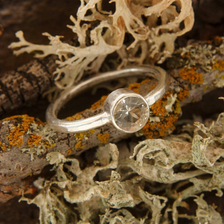 Oregon Sunstone ring handmade with American Mined™ Oregon Champagne Sunstone™ and reclaimed Fine Silver. Gemstone dazzles it is 6mm, about 3/4 carat.
